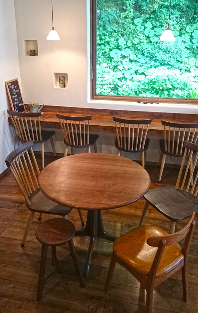 千葉県若葉区の平和公園近くにあるパインツリーカフェさん。 緑に囲まれ、隠れ家的な落ち着いてランチができる一軒家カフェです。 ブラックウォールナットの丸テーブルを納品させていただきました。 先日の「上質な日常」展にて色々と …
