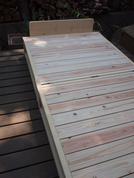 折りたたみベッドを作らせていただきました。 お客様のご要望で無塗装。 開いた状態でも折りたたんだ状態でもタイヤが効くようになっています。 一連の動作を容易にするためになるべく軽くなるよう設計、材を選択。 & …