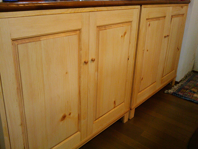 カウンター下の収納を納品させていただきました。 ご自宅を新築中に測定させていただき、新居完成後に納品させていただきました。 お客様のご希望で壁等に合わせて材はパイン、カウンター天板に合わせて集成材です。 引き戸のレール部 …